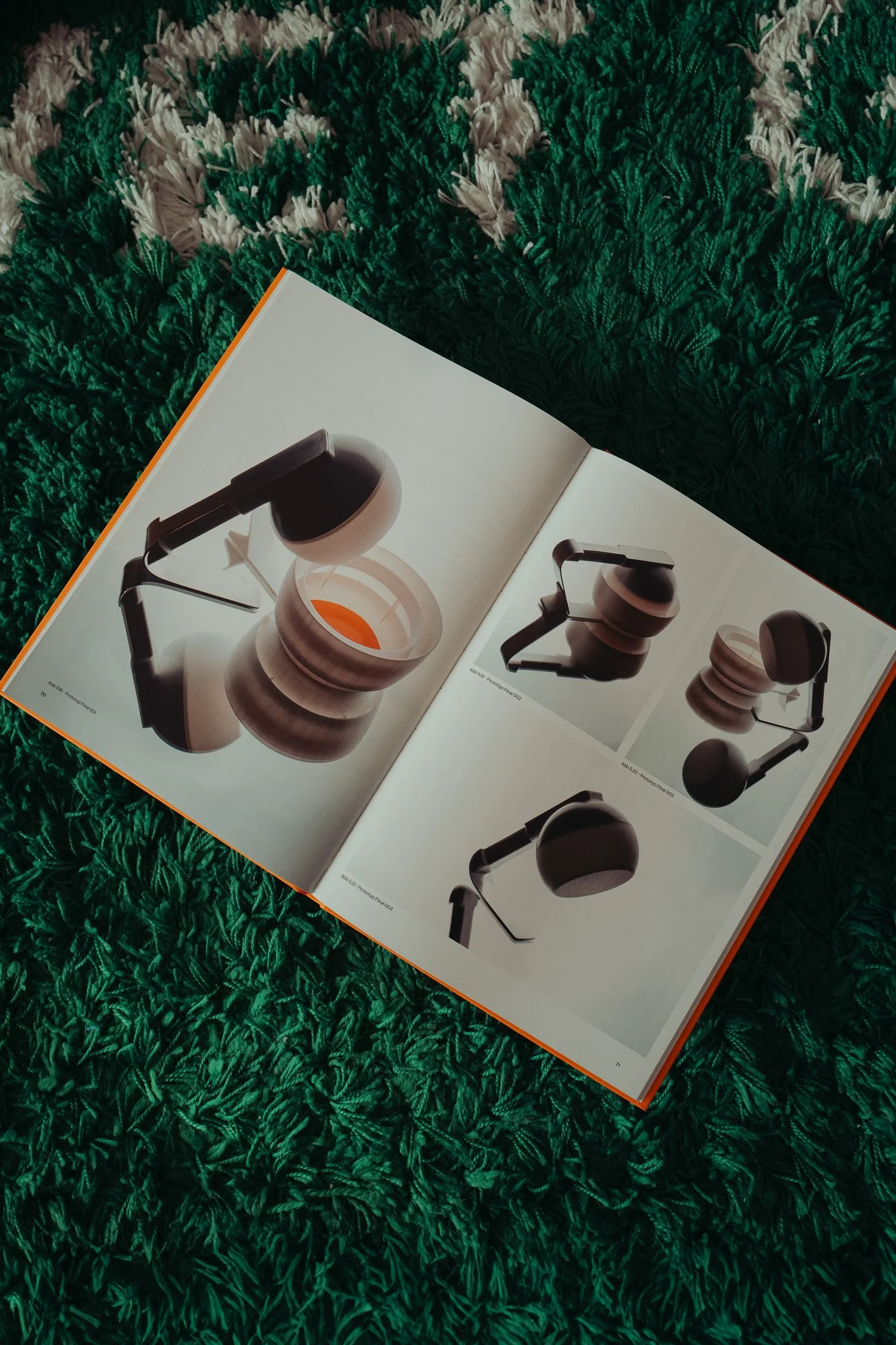 Battery-powered desk lamp with a charging cradle that redirects its neutral white output onto an orange reflector, producing indirect warm ambient light while the work surface remains unlit. The charge state is used as a physical cue to interrupt continuous work and support regular break routines.